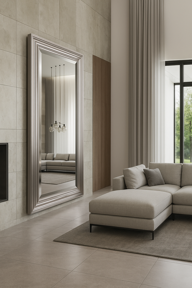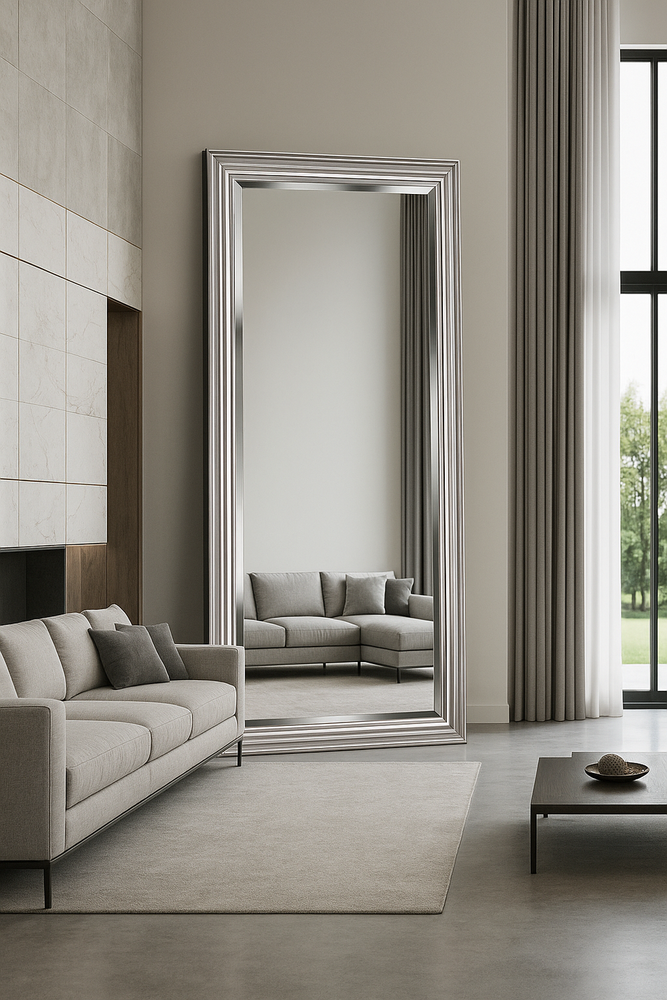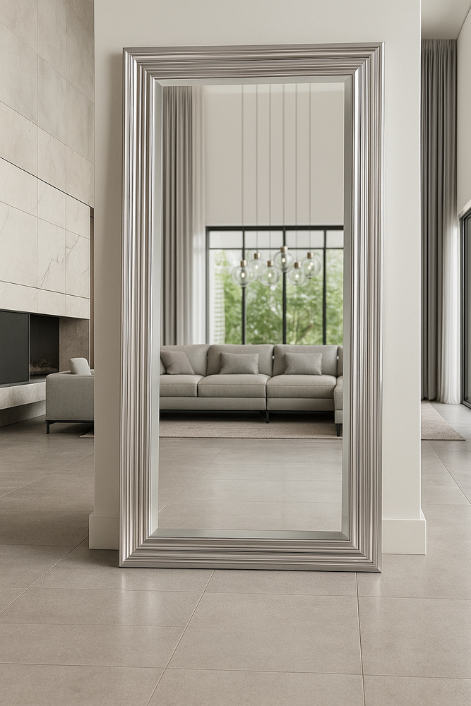Nuevo espejo de 2x1 m con marco plateado brillante de 10 cm. REGISTRATE Y HACE TU PEDIDO