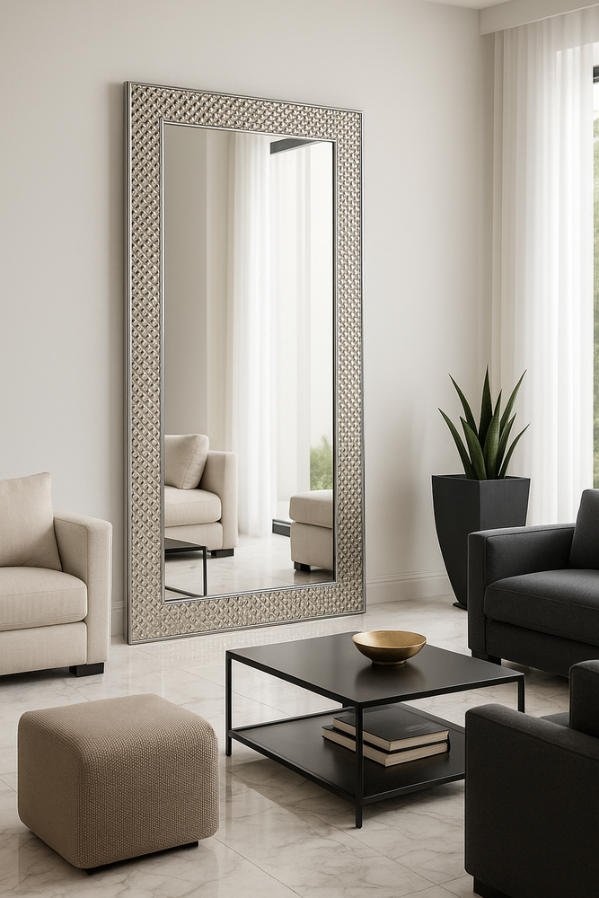 Nuevo espejo de 2x1 m con marco plateado brillante de 10 cm. REGISTRATE Y HACE TU PEDIDO
